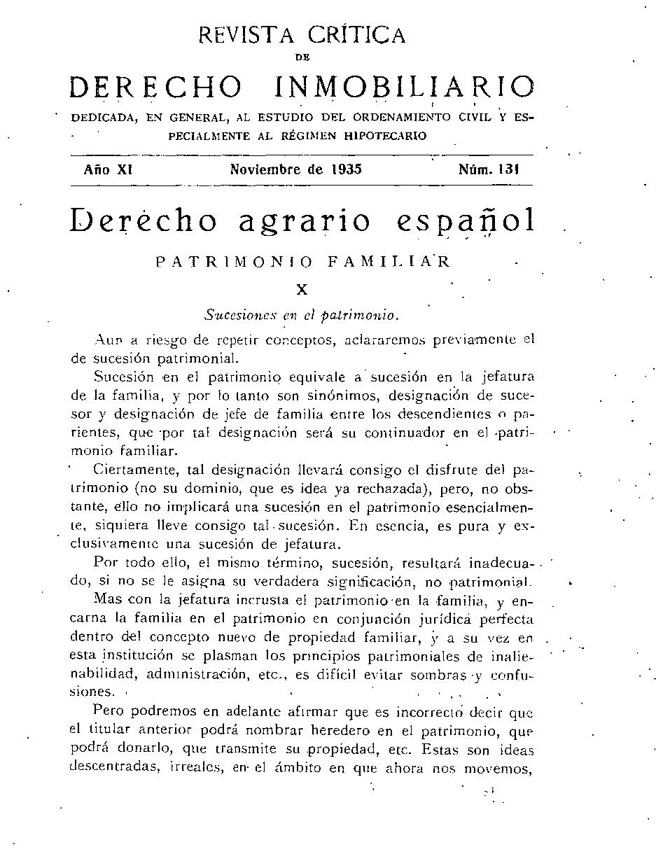 Derecho agrario español. Patrimonio familiar. (1935). Revista Crítica De Derecho Inmobiliario, 131, 801 a 807. https://www.revistacritica.es/index.php/rcdi/article/view/9476